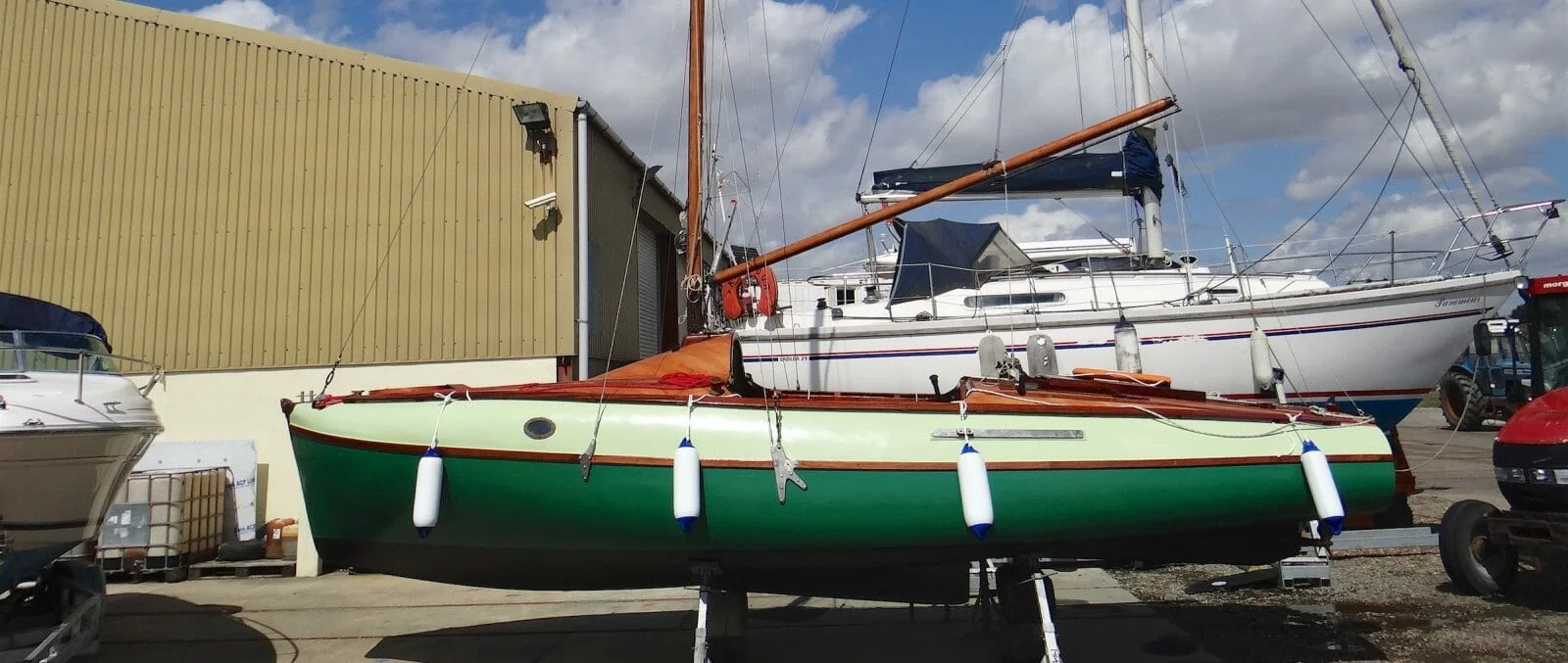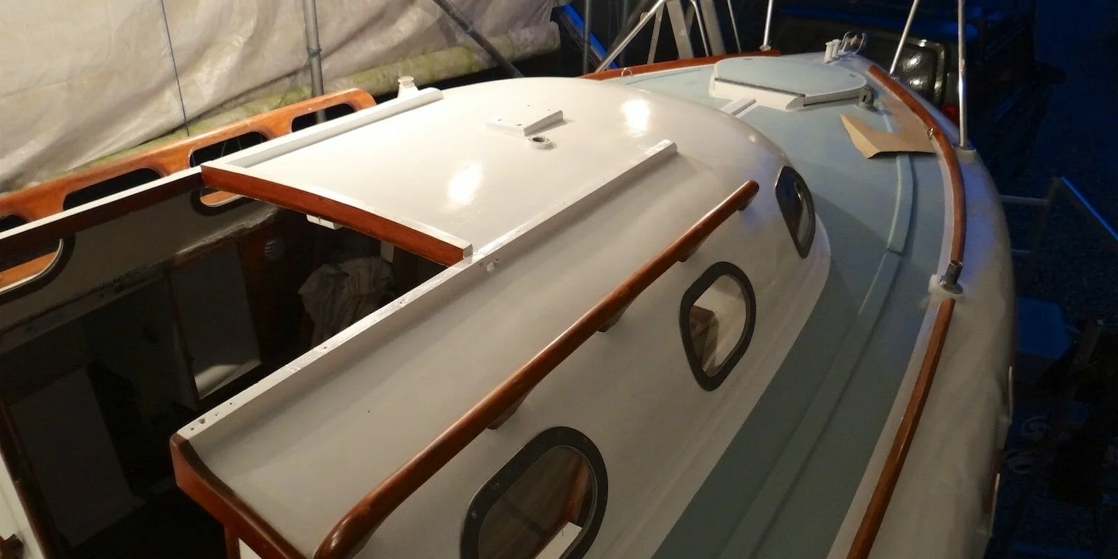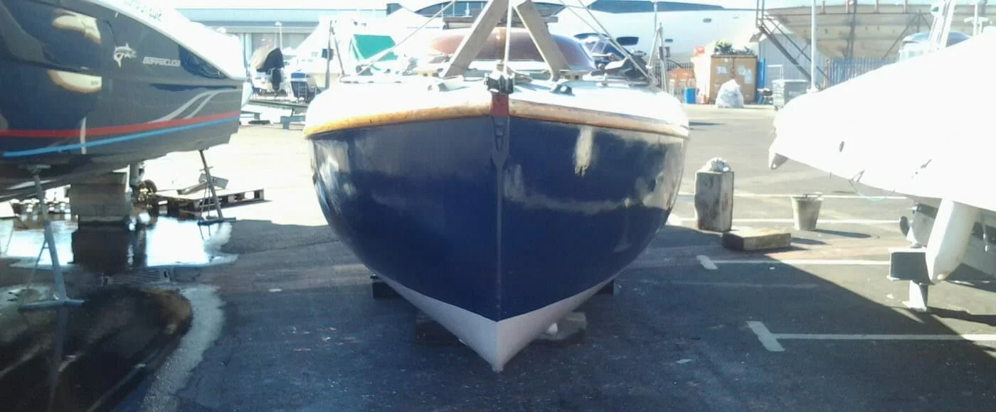 Here are the latest photos of Elle, moved outside the barn until October. New Ivory upper topsides and blister with “Jotun Hard Top” Under deck covers – awaiting new owner. AlsoRead More…