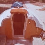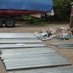 A182 Upper part of transom repaired and new skin applied (tape to prevent animals getting in!)