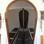 A183 Prior to replacing the deck, one inch Sapelle planks were shaped and inserted as under-deck reinforcement for fittings such as cleats, fairleads and pulpit.